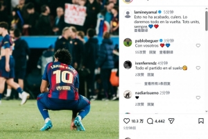 巴萨边锋亚马尔社媒晒出赛后低落的照片,并写道:“这一切还没有结束,球迷们。我们将在次回合比赛中倾尽所有。永远团结一心。”