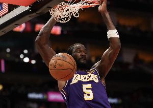 本场比赛,湖人中锋艾顿上场31分钟,11投9中得到21分5篮板1助攻。