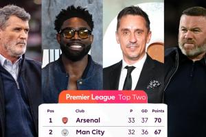 罗伊·基恩: “我坚持选阿森纳。虽然信心没有赛前那么足了,但我还是要坚持阿森纳,因为我在赛季初就这么预测了。”