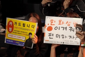 体育资讯4月10日讯 LCK第二赛段今日HLE对阵BFX,导播给到观众席Kanavi应援牌,内容如下: