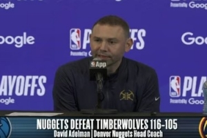 体育资讯4月19日讯 NBA季后赛首轮,掘金主场116比105击败森林狼,大比分1比0领先。赛后掘金主帅阿德尔曼接受了媒体采访,以下为采访全文。